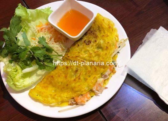ベトナム風お好み焼き。ライスペーパーで巻いて食べます。