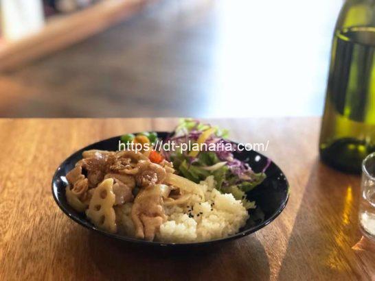「豚肉とれんこんのしょうが焼き&ボーンブロスごはん」900円